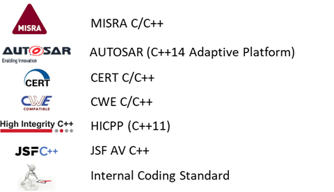 自動執行行業編碼規范:MISRA, AUOTSAR, CERT, CWE, HICPP 等