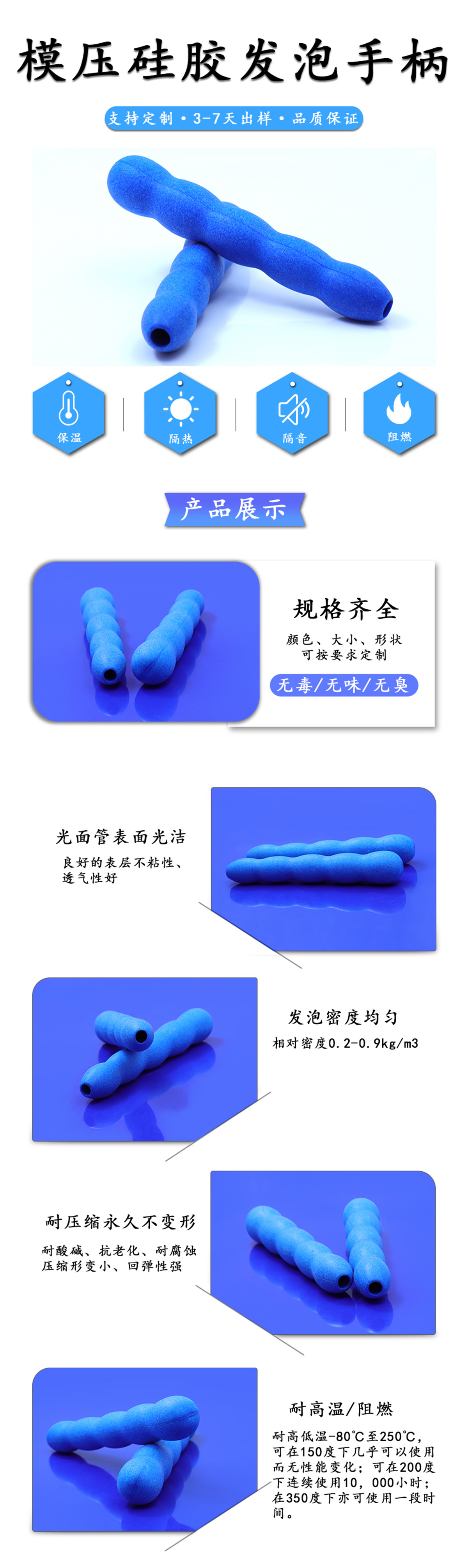 模壓硅膠發泡手柄: 采用優質硅膠原料制作,安全無毒無味、顏色、大小、形狀可按要求定制